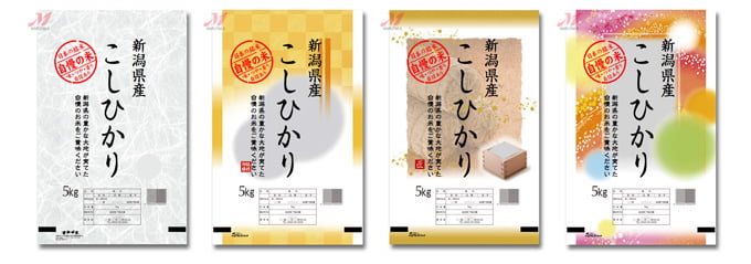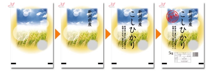 ベース米袋デザインから多種多様な展開が可能なセミオーダー米袋
